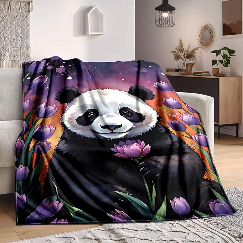 1pc Panda Flower Garden Blanket - Lightweight Flannel Fleece with Digital Printing, Soft Warm for Sofa, Travel, Camping, Office yy251018302