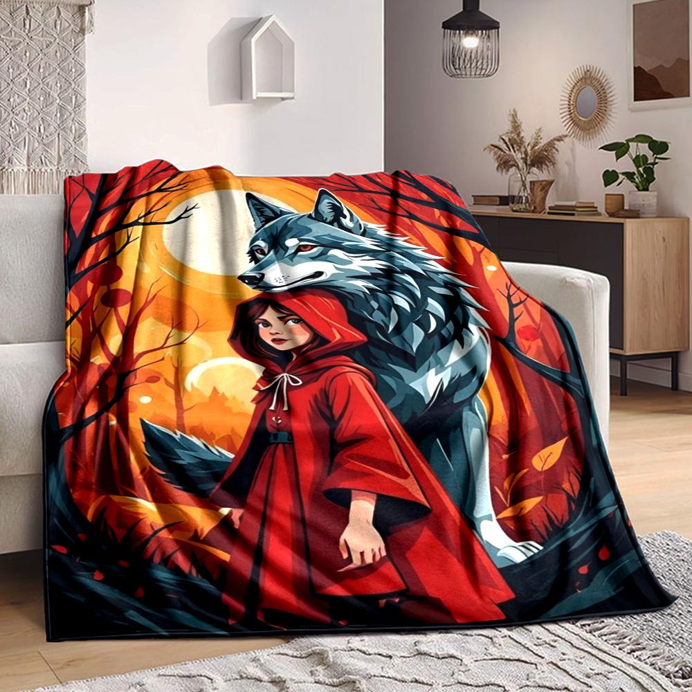 1pc Wolf and Red Hood Blanket - Lightweight Flannel Fleece with Digital Printing, Soft Warm for Sofa, Travel, Camping, Office yy251018294