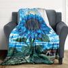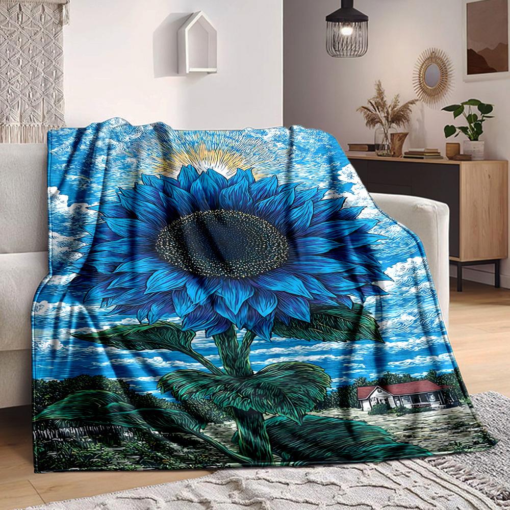 1pc Blue Sunflower Blanket - Lightweight Flannel Fleece with Digital Printing, Soft Warm for Sofa, Travel, Camping, Office yy251018251