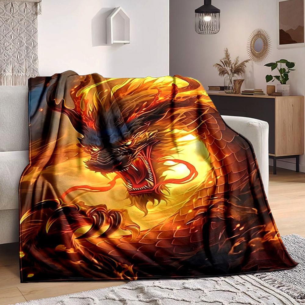1pc Fire Dragon Blanket Lightweight Blanket Throw Blanket For Sofa, Bed, Travel, Camping, Livingroom, Office yy251010084