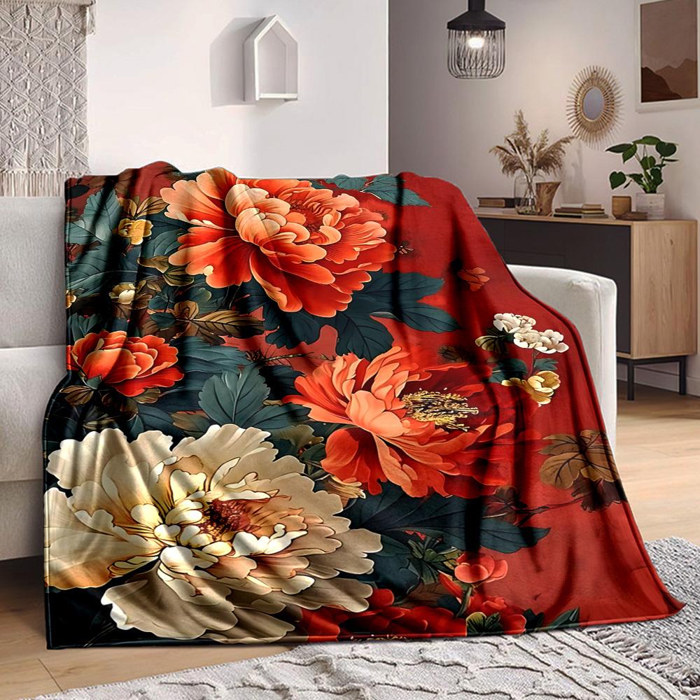 1PC Peony Print Blanket - Soft Warm All-Season Throw for Sofa, Bed, Car, Office, Throw For Sofa yy250916108