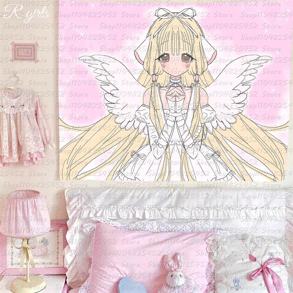 Kawaii Home Decor Wall Hanging Tapestry Anime Pink Girl Tapestry Wall Bedroom Background Decor Cute Fashion Lady Tapestries