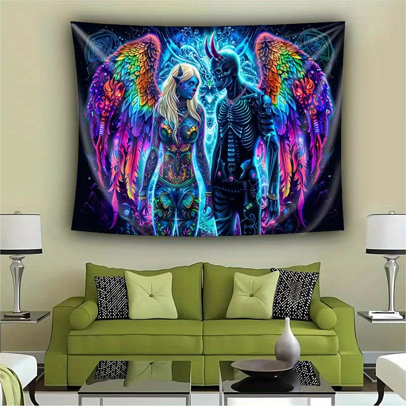 VIKAMA Starry Sky Neon Angel Devil Tapestry Bohemian Style Bedroom Living Room Dormitory Wall Hanging Room Decor