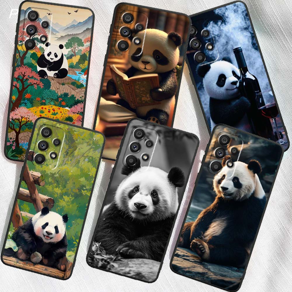 Cartoon Anime Panda Cute For Samsung A41 A35 A34 A33 A32 A25 A24 A23 A21s A06 A05 A04 A03 Note 10 20 Ultra 5G Black Phone Case