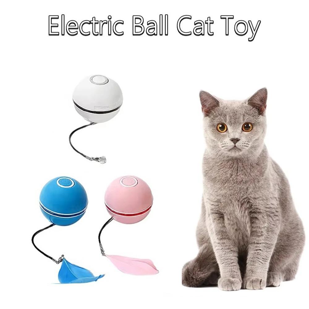 Automatic Smart Cat Toys Ball Interactive Catnip USB Rechargeable Self Rotating Colorful LED Feather Bells Toys Pet Products