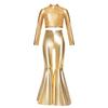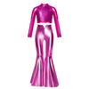 Girls Long Sleeve Sequin Metallic Crop Top Split Bell Bottom Shiny Pants Dance Performance Outfit