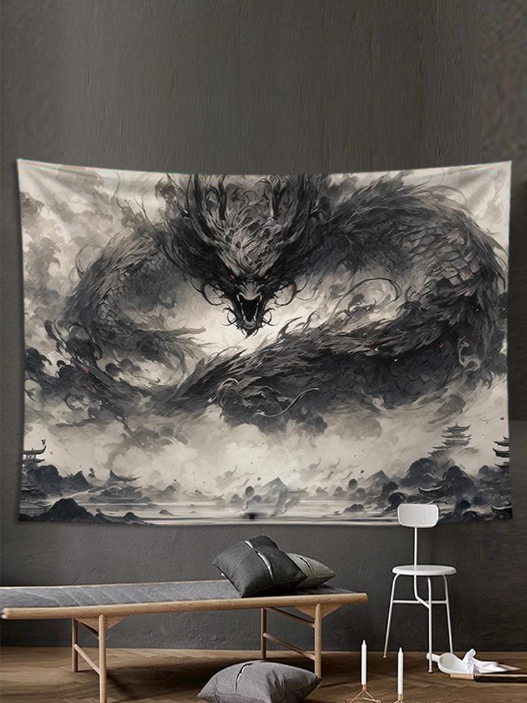 Black And White Ink Dragon Tapestry Wall Hanging Art for Bedroom Room Niche Background Bedside Canvas