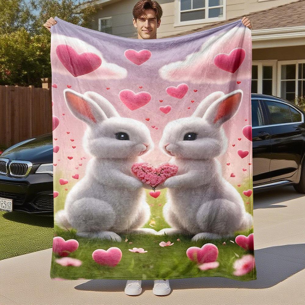 1pc rabbit love Outdoor Flannel Blanket Soft Warm All-Season Throw for Sofa Bed Car Camping Office, Cozy Gift Idea1293S