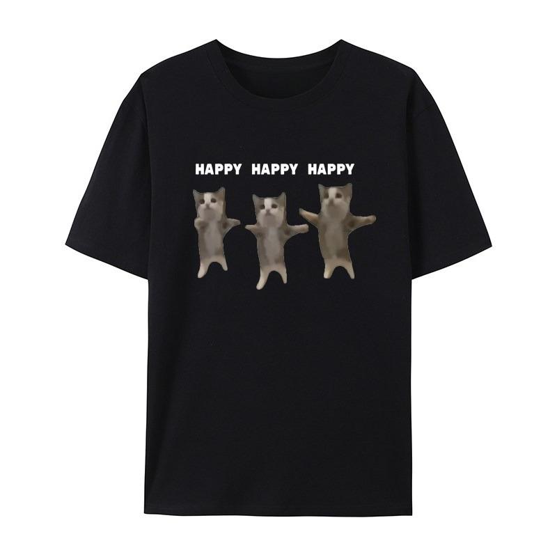 Cartoon Creative Happy Cat Casual TShirt Mens and Womens Luxury Brand Top