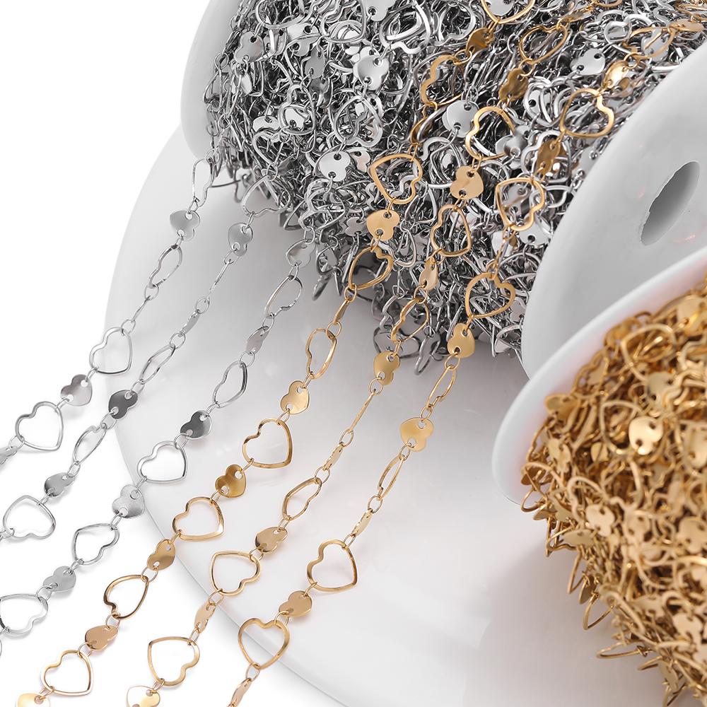 1m Stainless Steel Double Hole Peach Heart Hollow Love Shaped Link Chains for DIY Necklace Bracelet Choker Jewelry Making Chain