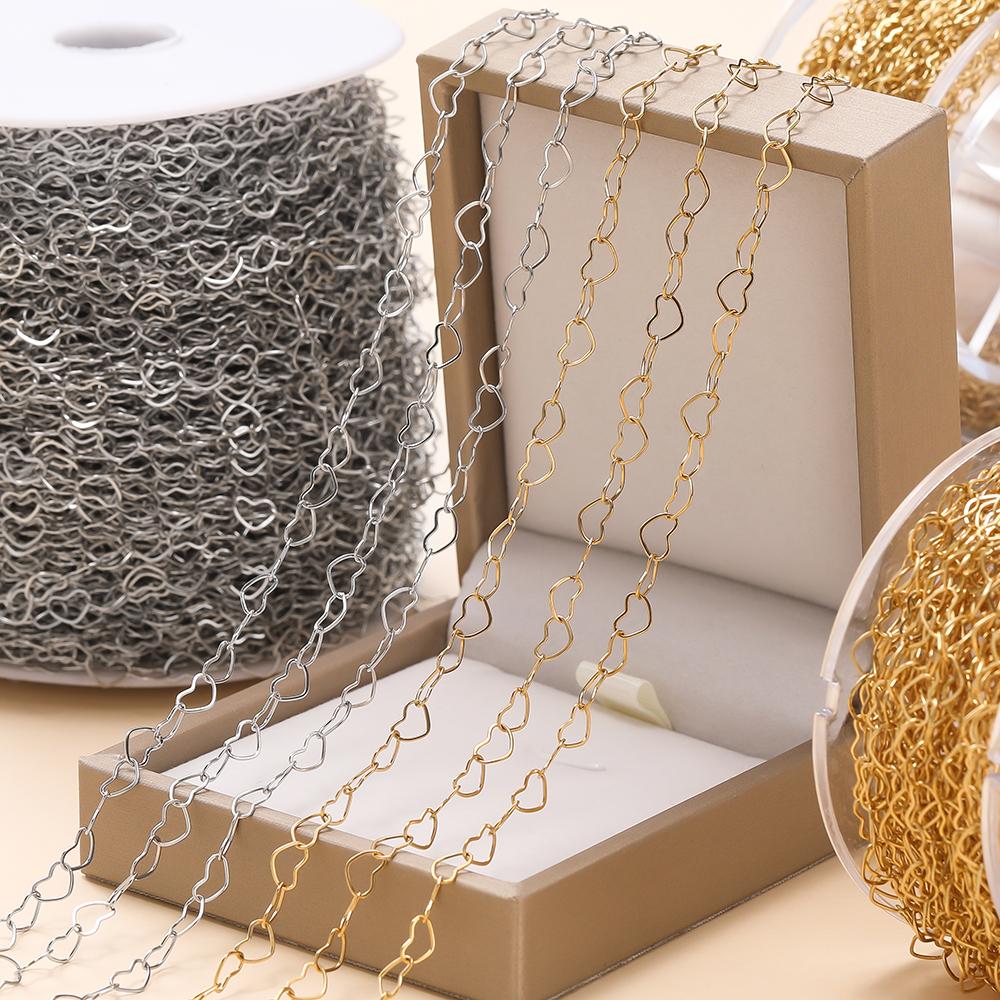 1m/39.37in Stainless Steel Hollow Peach Heart Chain Golden Chains for DIY Bracelet Necklace Waist Chain Jewelry Making Supplies