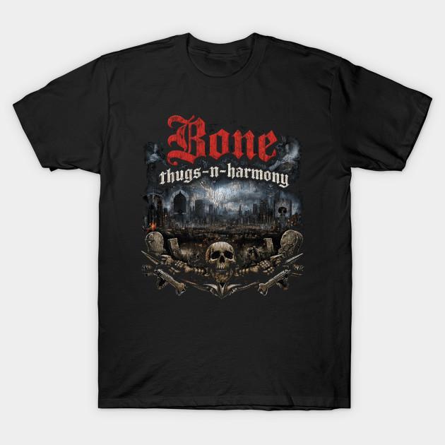 Men Black Print T-shirt Bone-Thugs-N-Harmony No-Cut Transfer Paper Print Cotton Tshirt