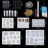 Silicone Mold For Epoxy Resin Set Jewelry Casting Mould Kit with Hand Drill,Glitter Sequins,Tools for Pendant Earring Making DIY