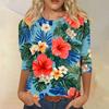 Women's Fashionable Casual Round Neck Three-quarter Sleeve Hawaiian Print T-shirt Top
