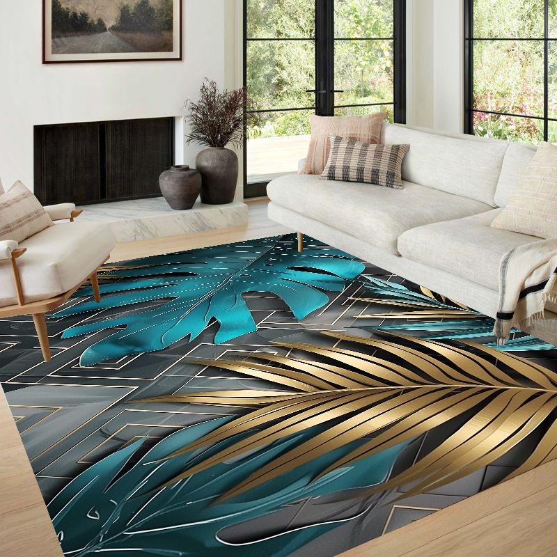 3d Golden Modern Carpet in The Living Room Leaf Patterns Room Decor Home Mats Machine Washable Large Area Rugs for Bedroom Ins