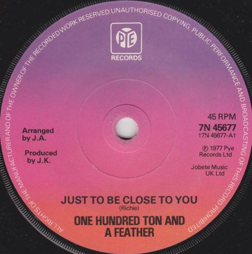 7inch Record ONE HUNDRED TON A FEATHER Just To Be Close To You 7N45677 Pye Records 1977 UK Rock Used
