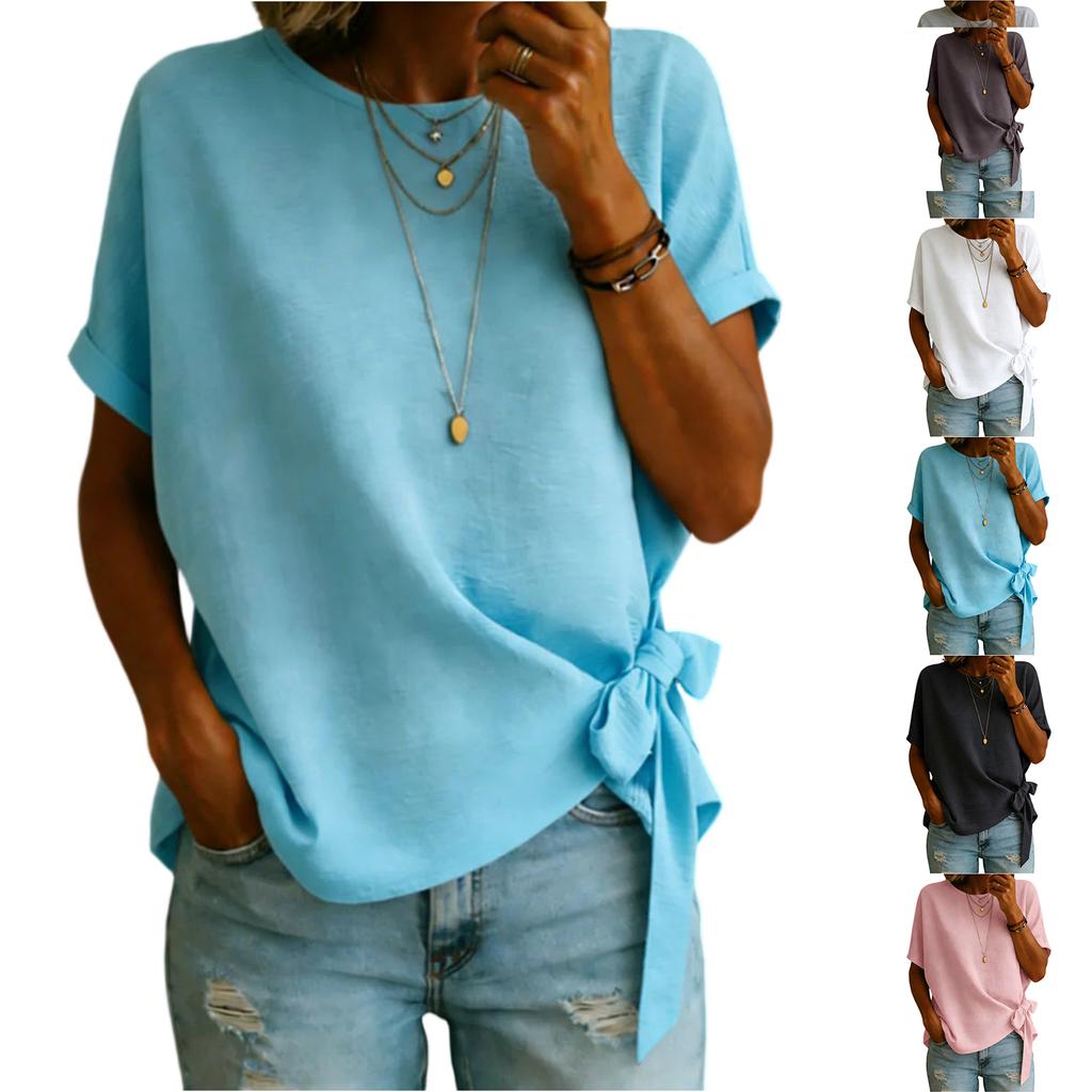 Fashionable Ladies' Summer New Arrival Color Loose T-Shirt With Ruffled Hem