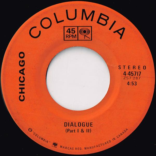 7inch Record CHICAGO Dialogue Part I II 445717 Columbia 1972 Canada Rock Used