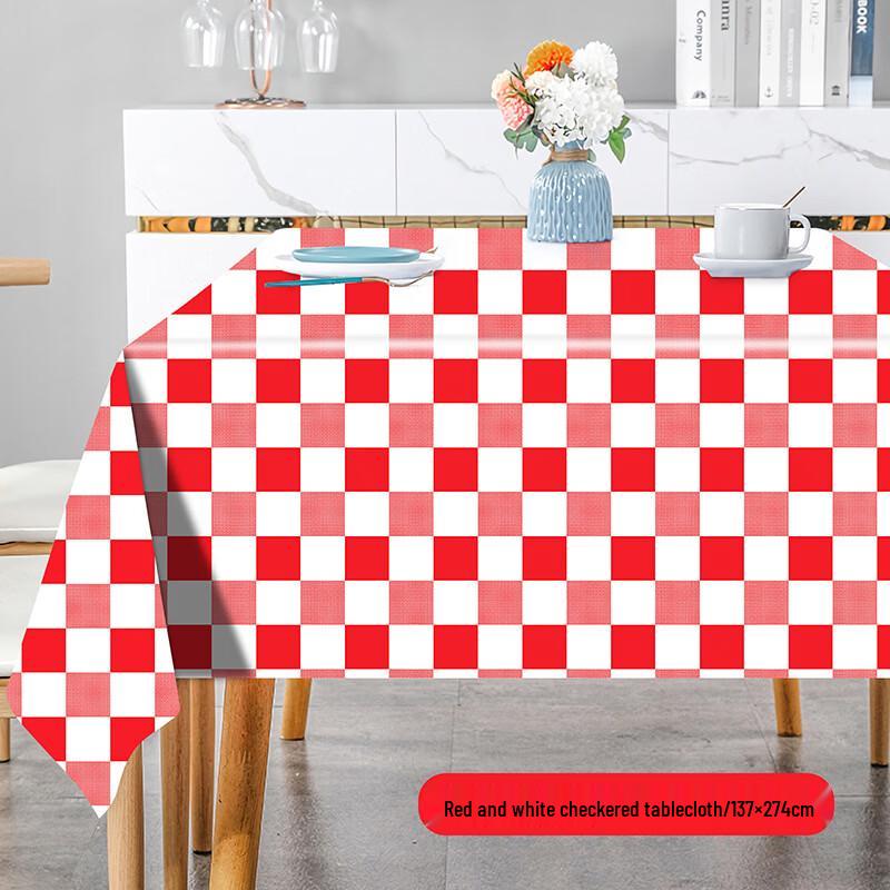 Disposable Red Plaid PEVA Tablecloth