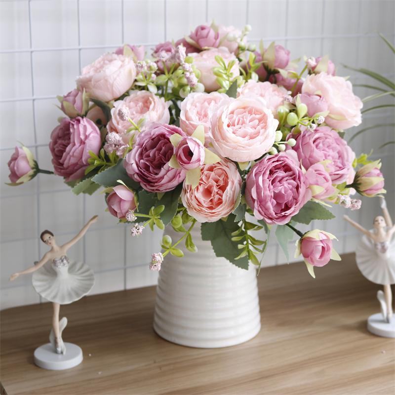 Simulate 5 Roses Korean Style Bouquet Persian Ocean Peony Home Vase Arrangement Decoration Wedding Bride Holding Flower Bouquet