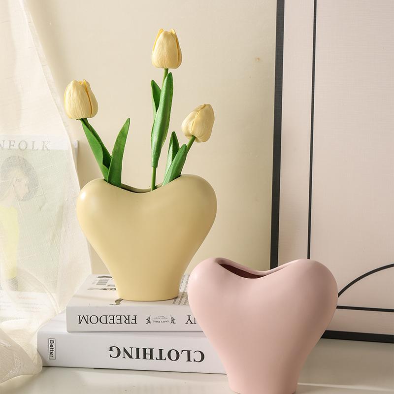 European Heart Shaped Ceramic Vase Delicate Hydroponic Flower Arrangement Container Room Dining Table Love Vase Home Decoration
