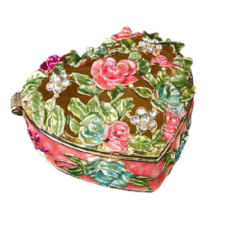 Decorative Zinc Alloy Enamel Flower Jewelry Case French Inspired Handcrafted Storage Box For Rings Necklaces