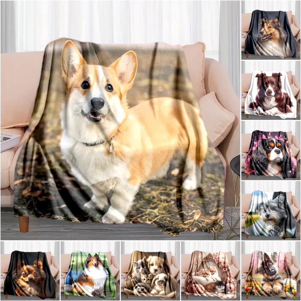 1PC Dog cute printed blanket, all season lightweight home office outdoor nap multifunctional blanket A8
