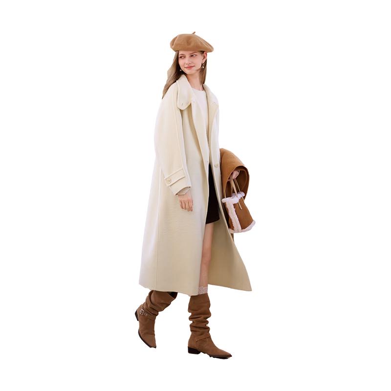 Xiangying Women's White Double-faced Wool Blend Mid-Length Coat