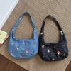 Sweet Women's Denim Shoulder Bag Large Capacity Messenger Bag Cute Embroidered Tote Bag Outdoor