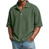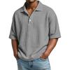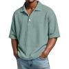 Men Waffle Knit Solid Color Short Sleeve Casual Loose Fit Polo Shirt