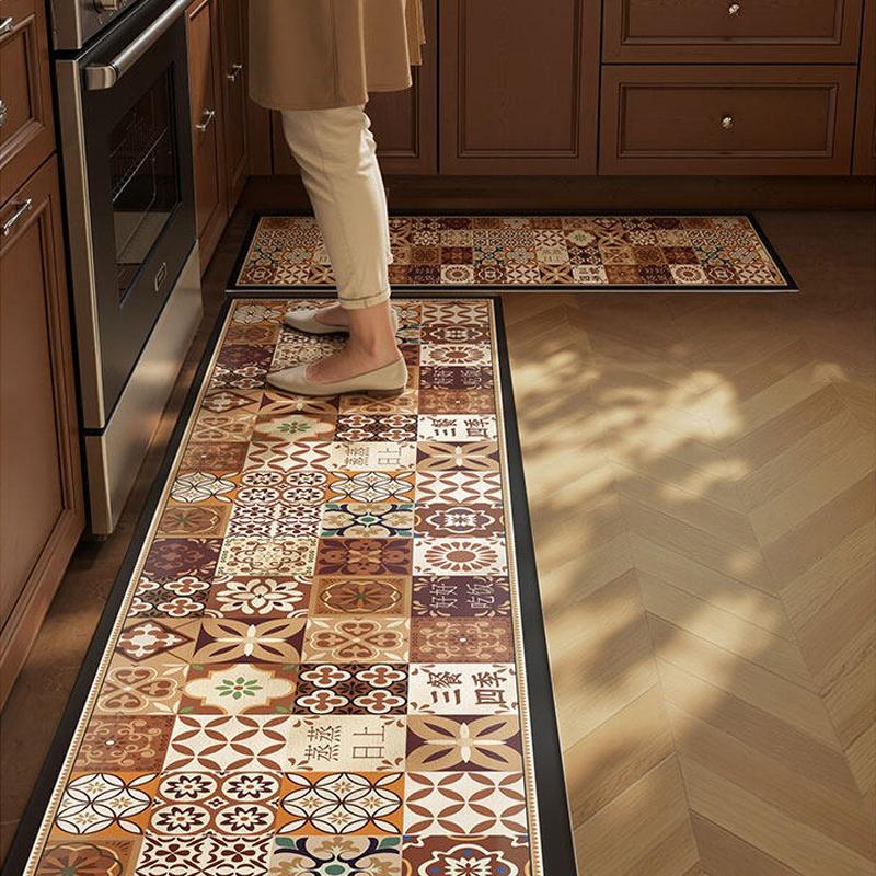The floor mat you are looking at now is professionally used in the kitchen. Its fabric is leather PVC. Its main feature is waterproof, oil-proof and non-slip. At the same time, its soft and resilient fabric can also protect the tableware from being broken due to falling.