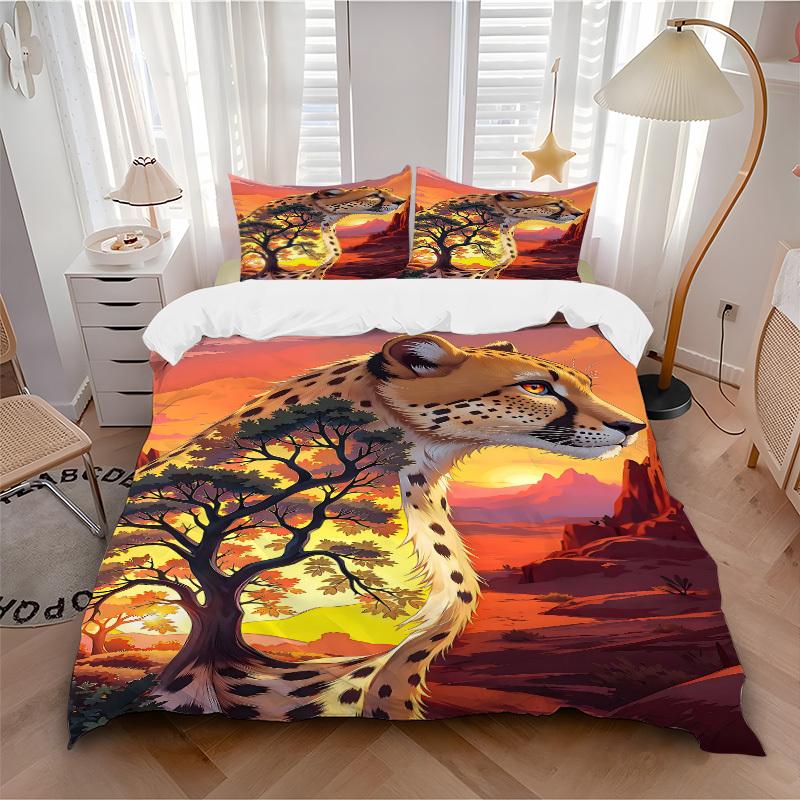 3pcs Cheetah Print Bedding Set - 1 Duvet Cover + 2 Pillowcases(Core Not Included), Machine Washable Polyester yy251216105