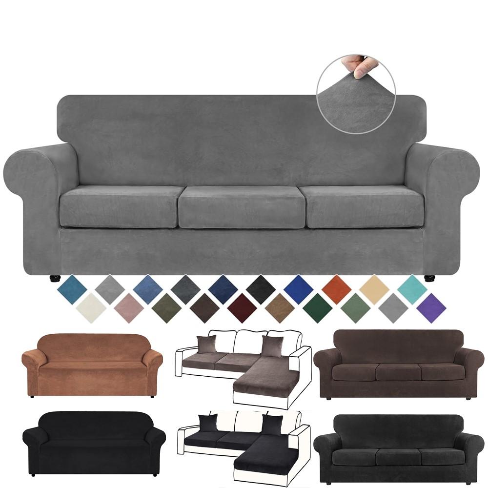 Stretch Velvet Couch Covers Cushion 1/2/3Seater Sofa Slipcovers Washable Elastic Sofa Cover Soft Thick Plush Furniture Protector
