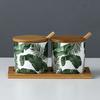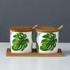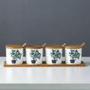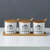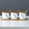 Kitchen seasoning tools ceramic seasoning jar set marble pattern cruet bamboo tray kitchen supplies seasoning box salt shaker