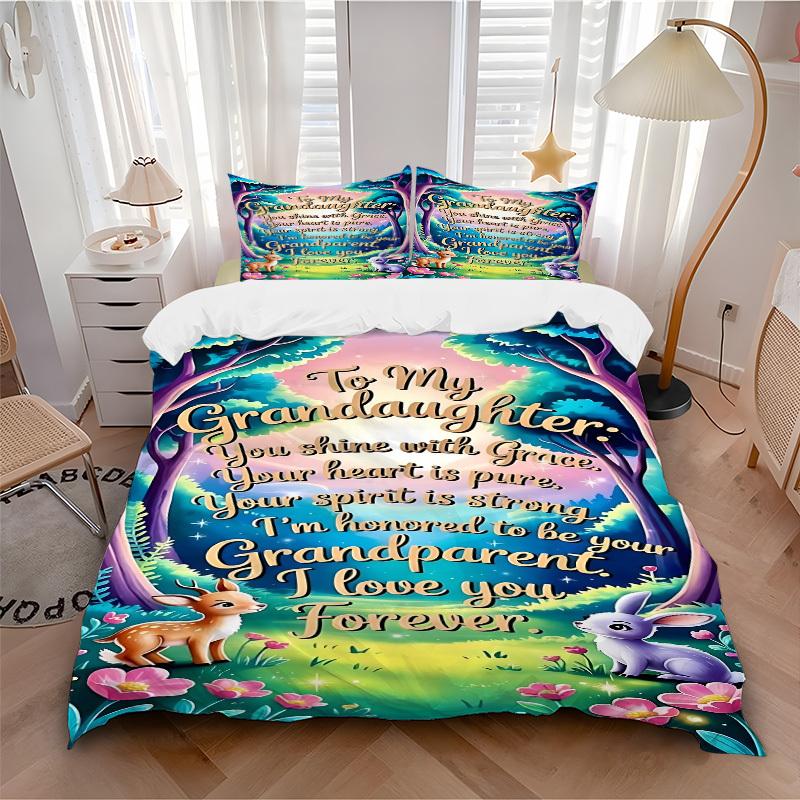 3PCs Grandparent Love Design Cover Set, Breathable Fabric, Machine Washable (1 Duvet Cover + 2 Pillowcases) (Without Quilt) yy250911159