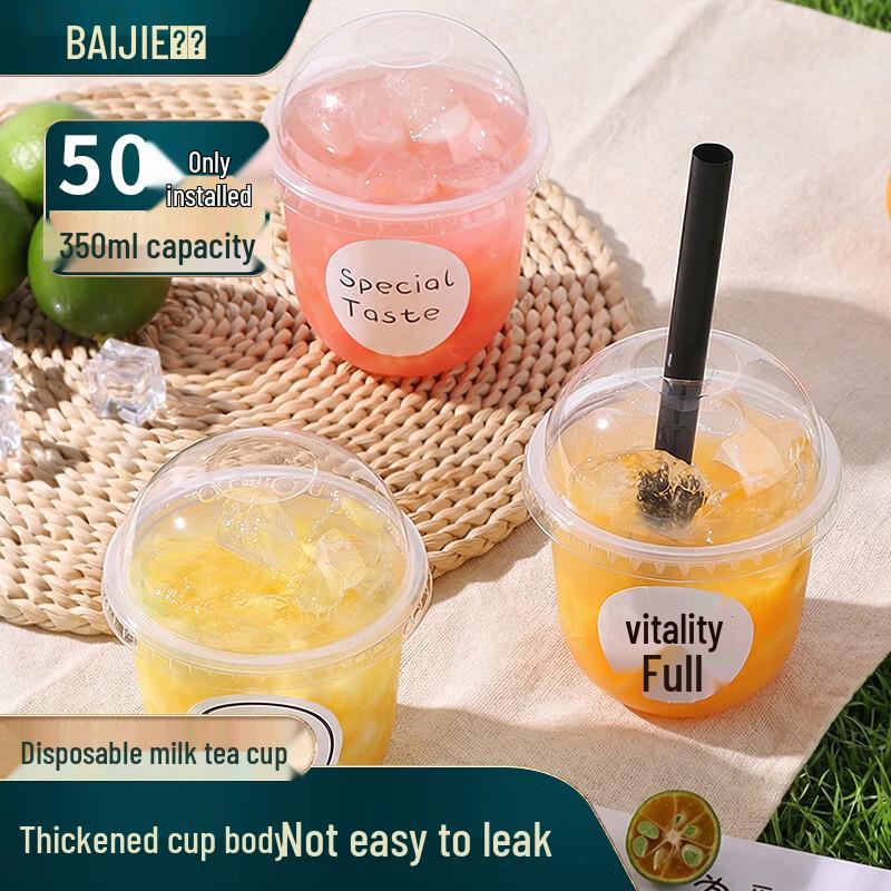 Baijie Disposable Milk Tea Cups with Lids, Straws & Stickers