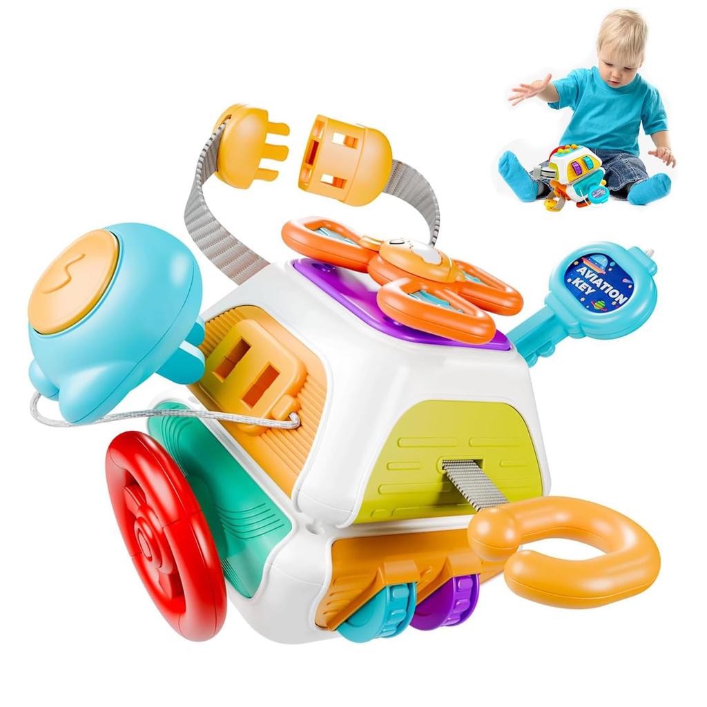 Bornoon Montessori Educational Toy, Decahedron Multifunctional Educational Toy, 10 in 1 Busy Board, Sensory Board, Key Toy, Educational Toy,