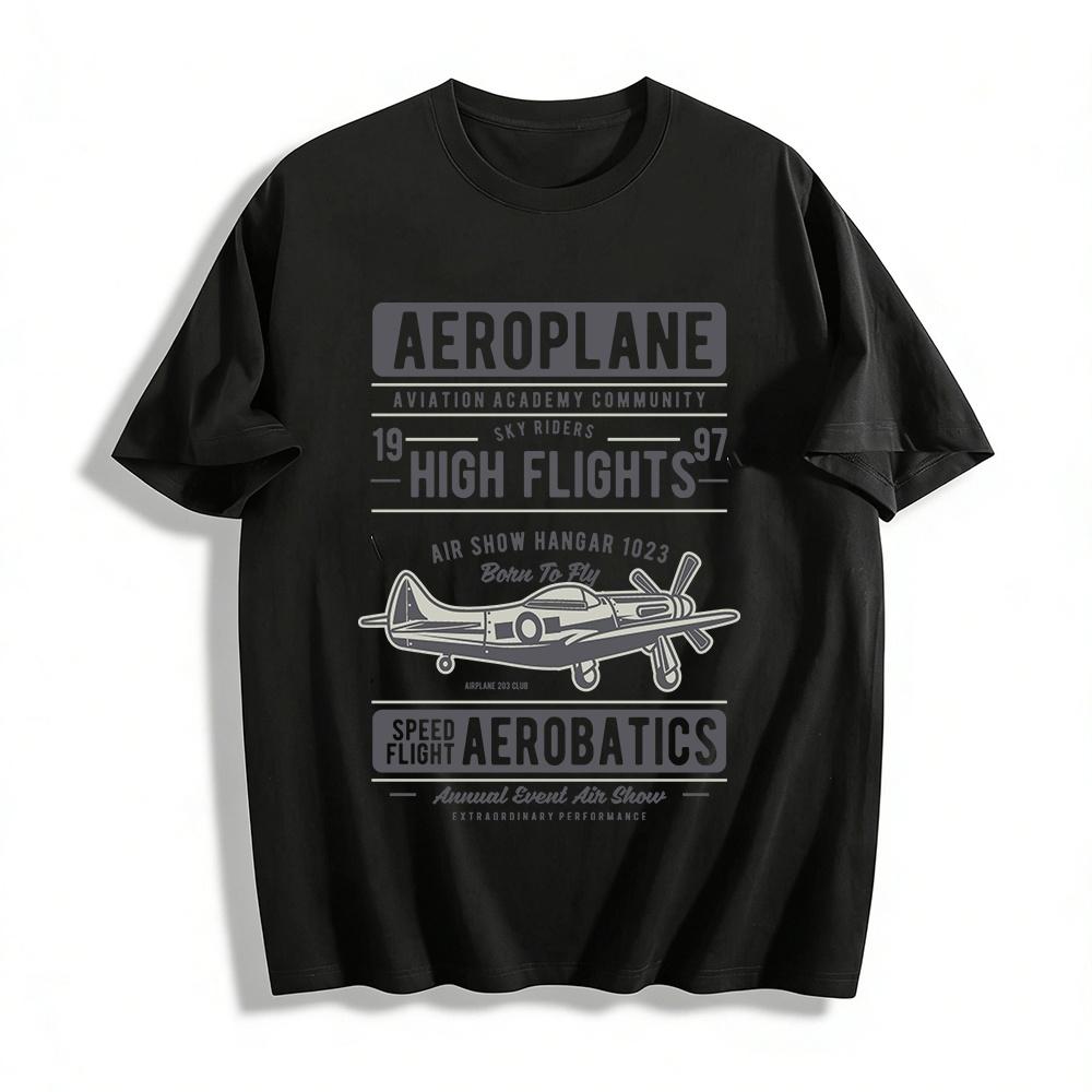 Vintage WWII Fighter Plane Aviation Academy Graphic Tee Casual Top Pure cotton T-shirt