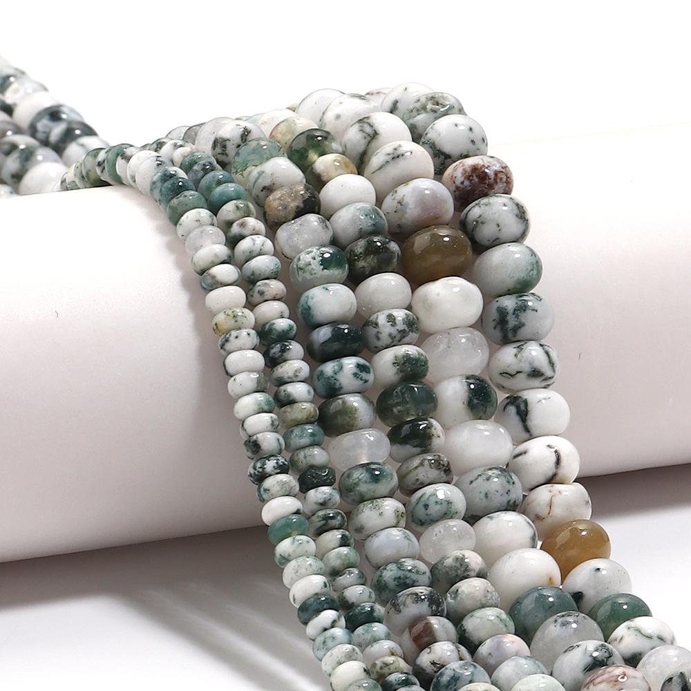 Natural Stone Beads 4 6 8mm Tree Pattern Abacus Flat Round Loose Spacer Beads For Jewelry Making DIY Bracelets Necklace Supplies