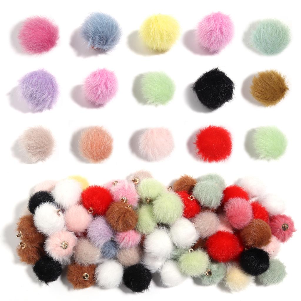 20pcs 16mm Plush Fur Covered Ball Beads Charms Cute Pompom Charms For Jewelry Making DIY Bracelets Necklace Earrings Accessories
