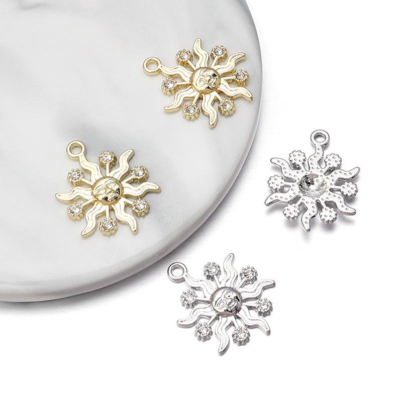 10pcs Alloy Sun Charms Gold Silver Color Rhinestone Pendant For Jewelry Making DIY Necklace Earrings Pendant Key Chain Supplies