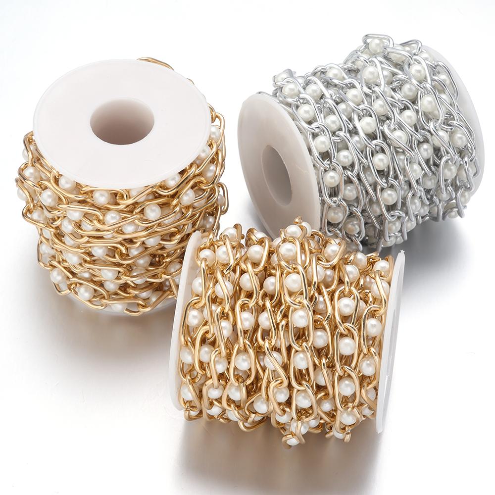 5 Yards/Roll Aluminum Pearl Chains Gold Silver Color Wide Link Chain for Jewelry Making Clothing Bag Chain Accessories Supplies