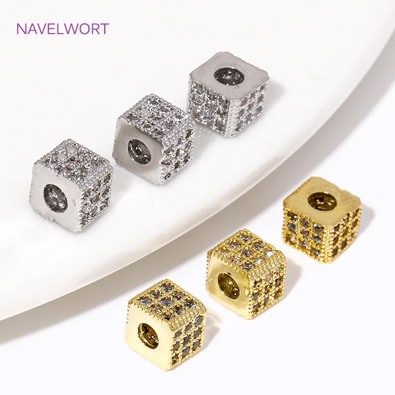 Luxury 18K Gold Plated Brass Pave Zircon Square Spacer Beads For Bracelet Making,Beads Separators,DIY Jewelry Making Findings