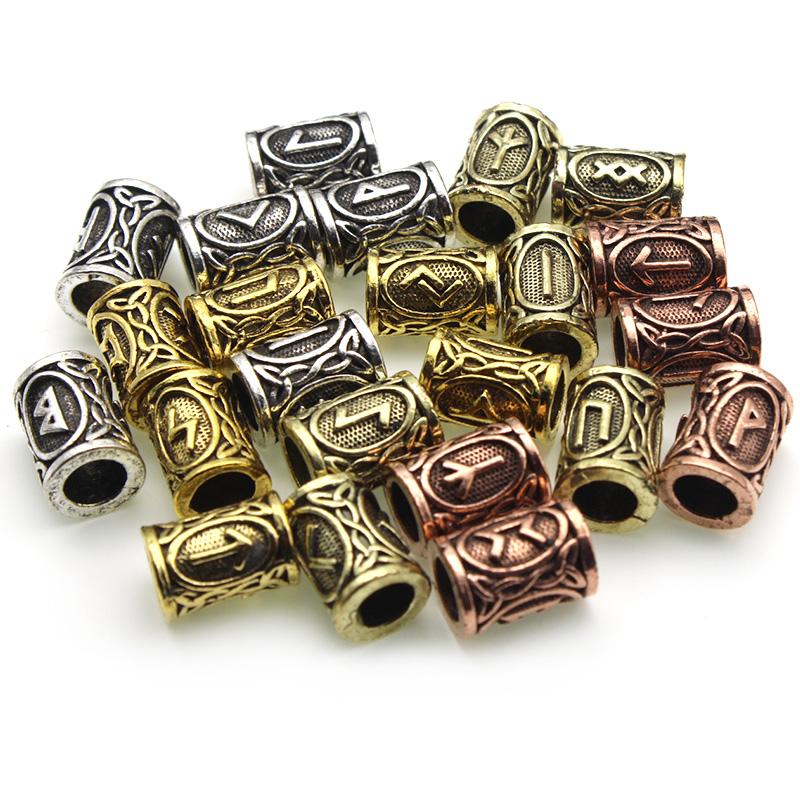 24pcs/Set Viking Rune Metal Spacer Beads Fit Beards or Hair Rune Vintage Big Hole Bead DIY Pendants Jewelry Making Accessories