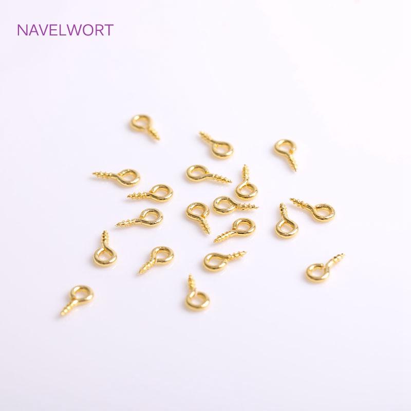4mm*8mm 18K Gold Plating Screw Eye Component Brass Small Tiny Mini Eye Pins Eyepins Hooks Eyelets Screw Threaded Wholesale