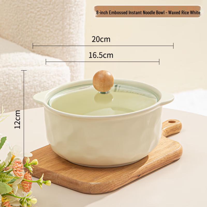 ZISIZ Japanese Style Hammered Ceramic Instant Noodle Bowl Set with Lid