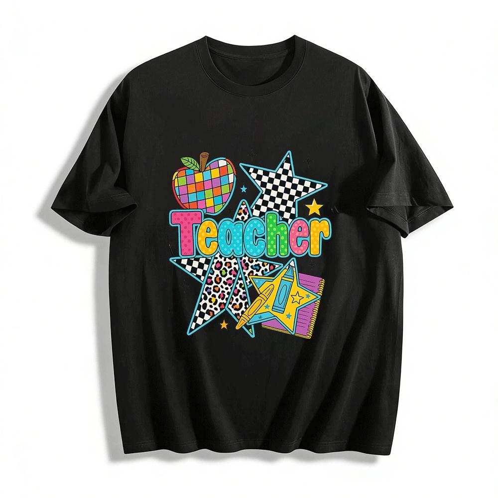 Retro Fun Teacher Themed Print T-Shirt Teacher Exclusive Casual Top Pure cotton T-shirt
