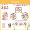 The set also includes a decorative banner and cake toppers to create a visually stunning party atmosphere.