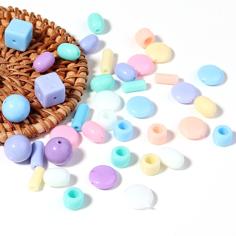 Colored Acrylic Loose Beads Various Shapes Round Square Mixed Spacer Bead Handmade Charm Jewelry Bracelets Necklace Supplies