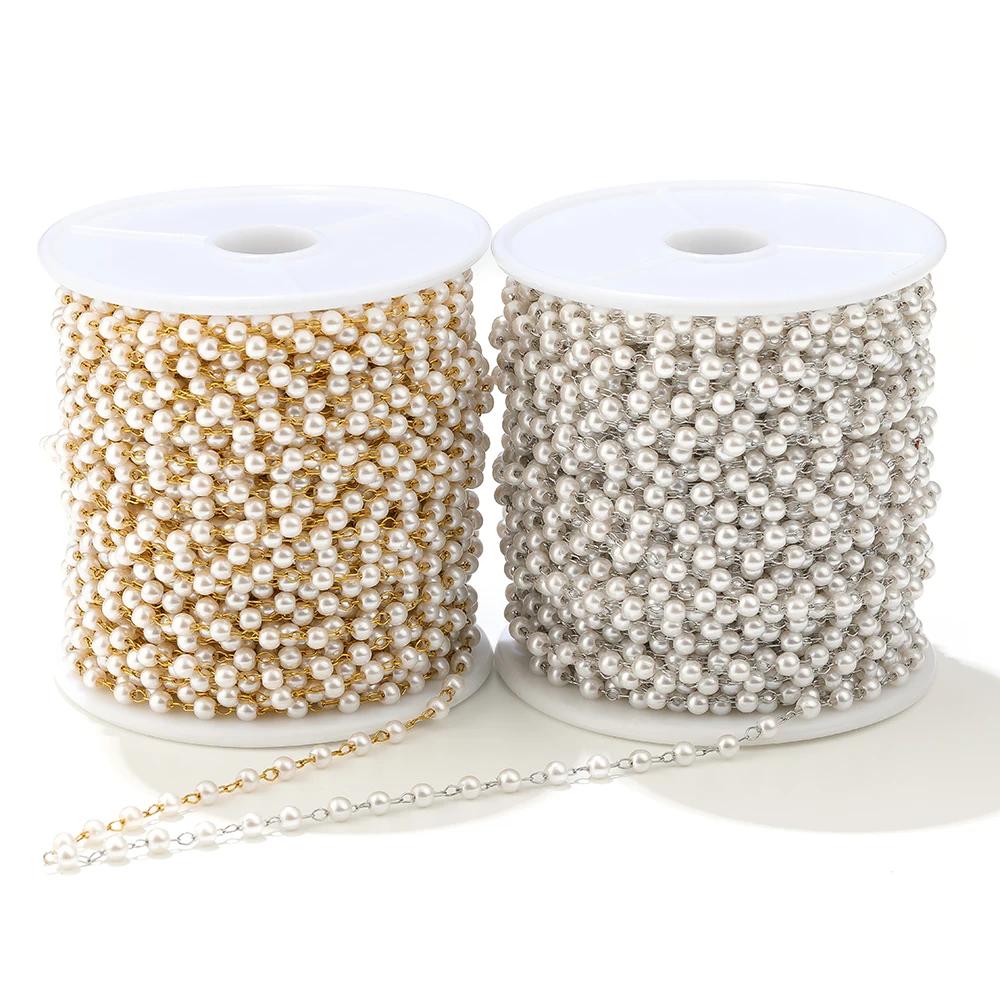 2 Meter Stainless Steel White 3mm Imitation Pearl Chains for DIY Necklace Making Jewelry Findings Bracelet Supplies Body Chains